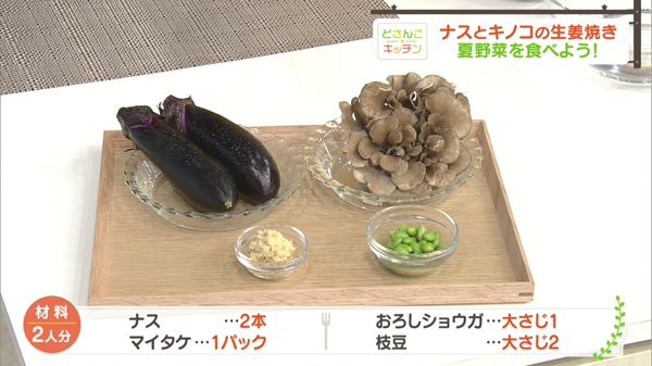 ナス2本、マイタケ1パック、おろしショウガ大さじ1杯、油大さじ2杯