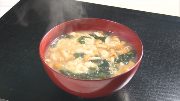 (3)沸騰したら火を止めます。味噌、しょうゆ、みりんを混ぜてから加えて味をみます。お椀に盛っていただきます。