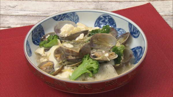 少しトロミをつけたので、食感のいい炒め物になりました。ブロッコリーと豆腐が、アサリのうま味を残すことなくまとった、ボリュームもあるレシピです。旬のアサリの美味しさを、存分に味わえるレシピになりました。