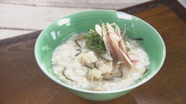 ホタテのうま味が溶け込んだおかゆは、食欲がない時でも胃腸に優しく、薬味と一緒に食べると、更に美味しく頂けます。冷たくして食べたい時はうま味が溶け込んだスープを冷やし、お米を洗ってお茶漬けのように食べれば暑い時に最高の一品です。