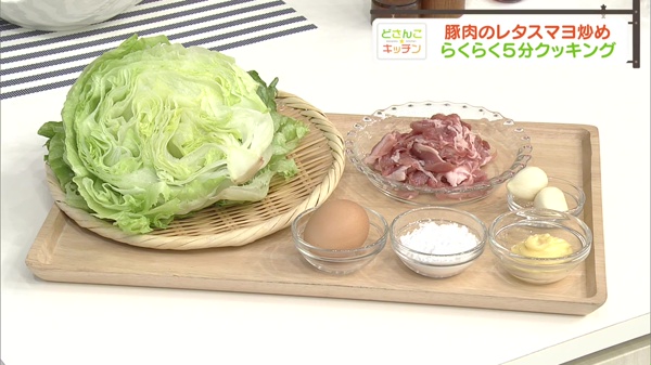 マヨネーズのコクとレタスのシャキシャキ感が嬉しい、食べ応えのある炒めものです。少し濃いめの味付けがごはんと合います。卵白と片栗粉をからめてあるので、少ない調味料でも、肉の味が感じられる一品になっています。