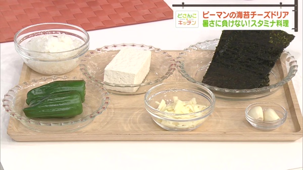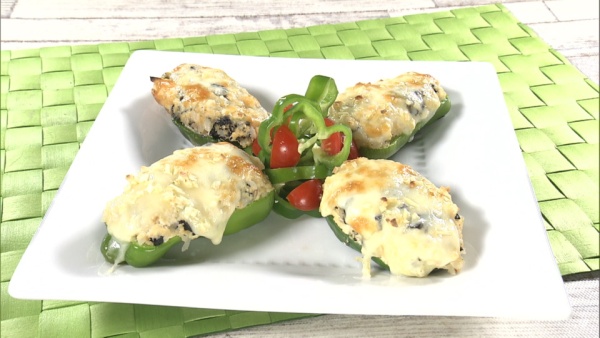 ピーマンのビタミンや豆腐のたんぱく質、チーズのカルシウムや旨味、海苔やご飯の繊維質など、様々な良い栄養素がバランスよく組み合わさってスタミナになってくれます。お弁当や行楽の一品に、パーティー料理の一品としても喜ばれます。