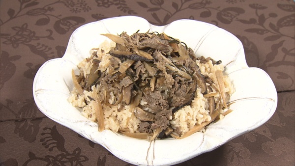 牛肉と米の相性は、こたえられない美味しさですね。すき焼き風の味付けで煮て煮汁だけを米と炊き、具は炊けてから混ぜます。贅沢なご馳走ご飯の出来上がり。おもてなしや特別な時のお弁当に、皆さんを感動させて下さい。あしらいで季節の枝豆や漬物などを添えると尚良いですね。