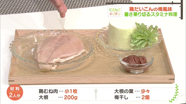 鶏ムネ肉小1枚、大根200g、油大さじ1杯、梅干し2個