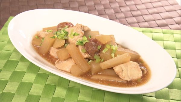 鶏肉と大根を梅干しで煮ます。味は薄めにし、梅干の滋養の塩分でいただきましょう。冷やすと味に締まりが出て美味しくなります。暑い日などは冷え冷えの一品を出され、喜んでもらって下さい。