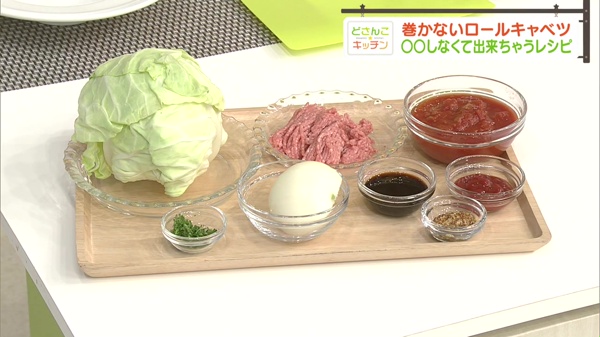 キャベツ中心部分約600g、塩・コショウ各少々、豚挽き肉100g、玉ネギ1/2個、塩・コショウ・酒各少々、パセリみじん切り少々