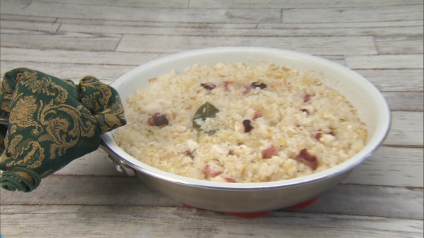 スペインの隣国ポルトガルの米料理です。タコを食べる国は多くはありませんが、スペインと同じような小さなタコが捕れるところでもあります。日本のタコとは違って軟らかいです。パエリアの様な作り方で、押し麦を入れるのが特徴です。