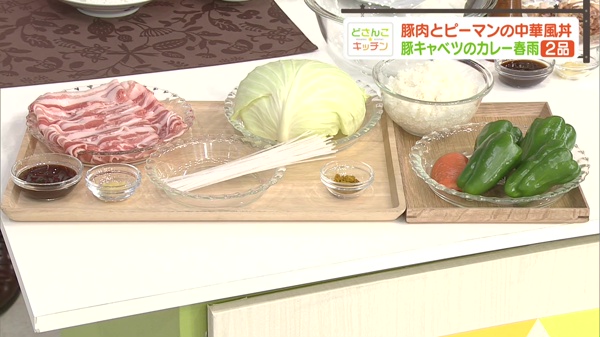 豚肉とピーマンの中華風丼 & 豚キャベツのカレー春雨