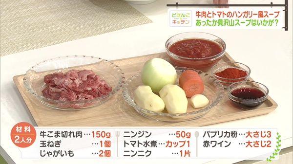 水カップ2杯、トマト水煮カップ1杯、パプリカ粉大さじ3杯