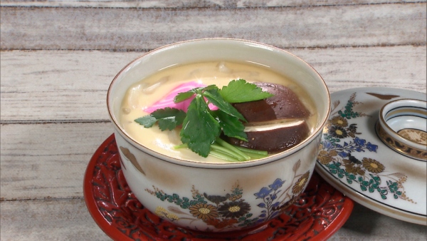 この料理は大阪発祥の郷土料理、小田巻蒸しです。オダマキとは紡いだ麻糸を丸く巻いたもので、うどんを麻糸に見立てた茶碗蒸しです。大きな丼に1人分で作るのも良いでしょう。滑らかでうどんと卵蒸しがよく絡まって、やさしい味わいです。具材はあるものを使うと手軽に作る事が出来ます。