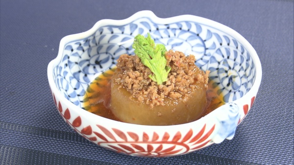 大根を、辛味のきいたひき肉と一緒に煮た、コクのあるクセになる煮物です。辛味の入れ方は好みで増減させて頂くと良いでしょう。コツは透き通る大根に仕上げる事です。ガリガリ感が残らない様、下ゆでの仕方も大切ですね。少し多めに作って、温め直して頂くのがお勧めです。