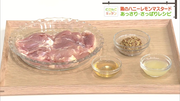 鶏もも肉1枚、塩・コショウ・油各少々、ハチミツ大さじ1杯、粒マスタード大さじ2杯、酒・レモン汁各大さじ1杯