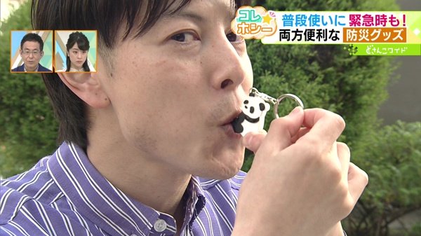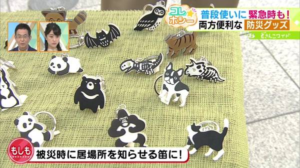 一見、可愛らしいキーホルダーですが、被災時には自分の居場所を知らせる笛になります。
