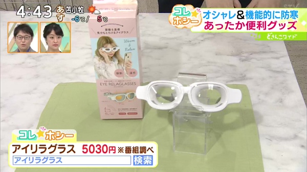 振動と温感で目元をリラックスさせる効果が期待できるメガネです。アイマスクと違って透明なので、読書やスマホ操作などの作業をしながら使えます。