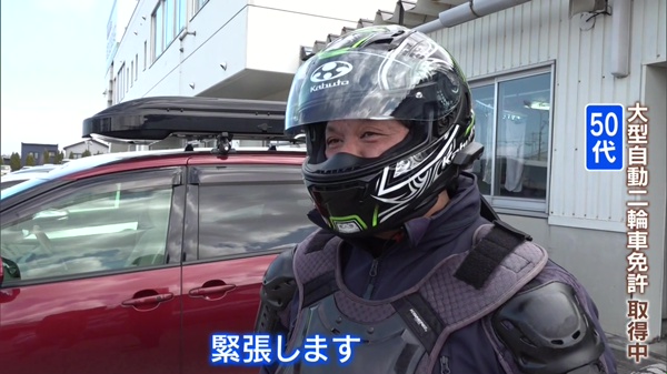 この日はオートバイ免許の卒業検定が。大型自動二輪の卒業検定を受ける54歳男性に密着しました。
