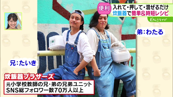 元小学校教師の兄・弟の2人で活動する「炊飯器ブラザーズ」。3月に「調理時間3分、あとは放置!日本一ズボラな炊飯器レシピレシピ100(出版:KADOKAWA)」が発売されています。 -