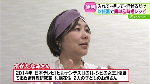2014年に日本テレビ「ヒルナンデス!」の「レシピの女王」で優勝、てまぬき料理研究家・すがたなみさん。「すがたなみのてまぬきレシピ(出版:ワン・パブリッシング)」など、時短レシピなど本も多数出版されています。