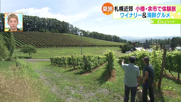 まずやってきたのは、余市町にある“オチガビワイナリー”。ヨーロッパの田舎町を連想させるような広大なブドウ畑に囲まれています。