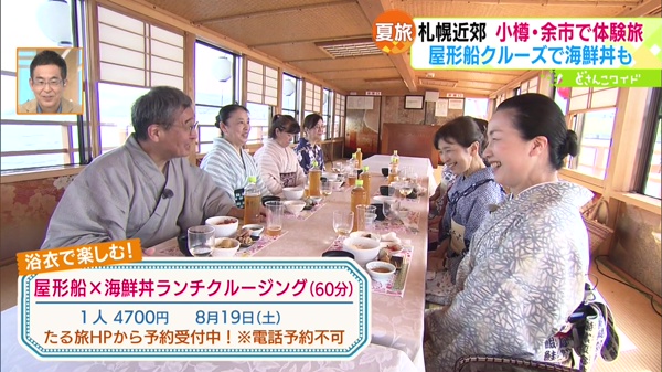 北海道唯一の屋形船クルーズです。ツアー会社が企画、浴衣で楽しむランチクルーズに明石アナも参加しました。
