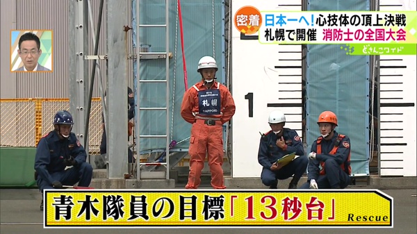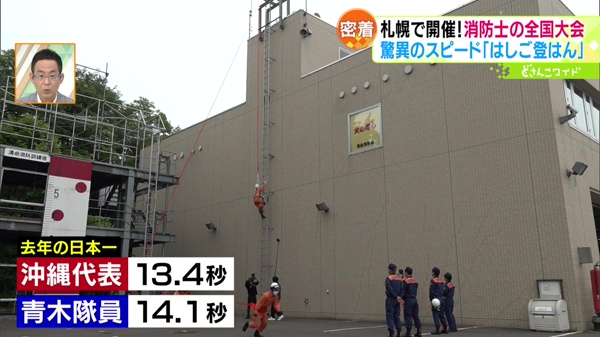 まず一人目は札幌市清田消防署、入隊6年目の青木僚佑さん。驚異的なスピード、「はしご登はん」という競技に出場します。