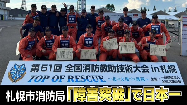 4人の日本一への願いは叶いませんでしたが、「障害突破」という5人組の団体競技で、なんと札幌市消防局が見事、日本一に輝きました。17年ぶりの快挙です。