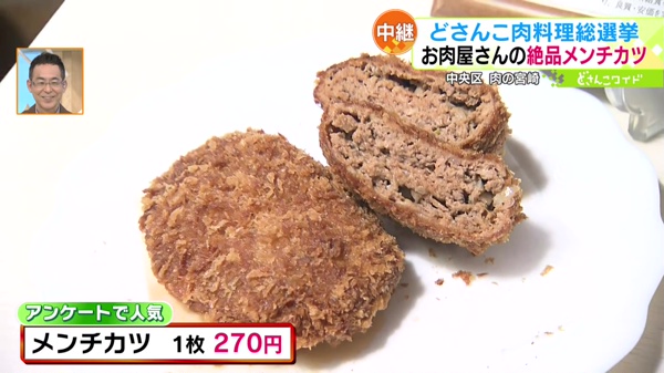 注文してから揚げている看板メニュー「メンチカツ」等をご紹介しました。