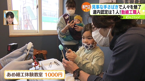 以前は旭川の旭山動物園内で店を構えていましたが、「飴󠄀細工の楽しさを、もっとたくさんの人に知って欲しい」と、念願だった札幌にお店をオープン。子供向けの体験教室を始めた所、口コミで親子連れのお客さんが沢山来るようになりました。