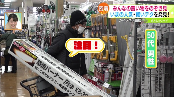 人々が買い物をしている瞬間に密着し、そこから良いアイテムやイマドキ事情に迫る新企画「ナニ買うウォッチング」。今回の舞台は、ホームセンター業界でナンバーワンの売り上げを誇る「カインズ」の大曲店です。