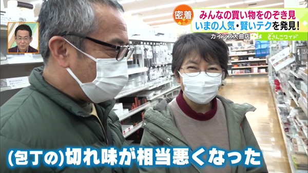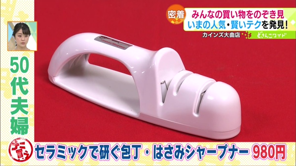 50代のご夫婦が購入したのは「包丁とぎ」。さび付いた包丁だけじゃなく、ハサミも簡単に研ぐことができます。
