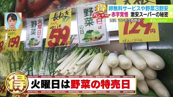 火曜日以外も特売日があり、月曜日は精肉、水曜日はお米、木曜日は鮮魚、金・土・日曜日も何かの特売日になっていて、毎日何かが安くなっています。