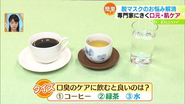 カフェインは利尿作用があり、カテキン系の飲み物は便を緩くしやすく、どちらも口を乾かしやすい飲み物と言えます。