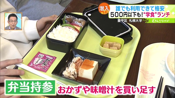 こちらの学食は、食べ物の持ち込みがOK!節約のため、おかずやみそ汁だけを買うという学生さんもいました。