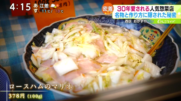 ●ロースハムのマリネ 378円(100g)お店のオススメ。和俊さんの母・恒子さんが作っていたのを真似して始めたという白菜を使ったマリネです。