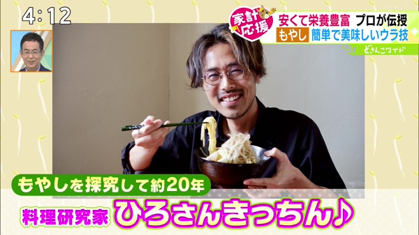 伺ったのは、YouTubeでも人気の料理研究家・ひろさんきっちん♪ もやしの保存のコツのほか、簡単で美味しいレシピも教えていただきました。