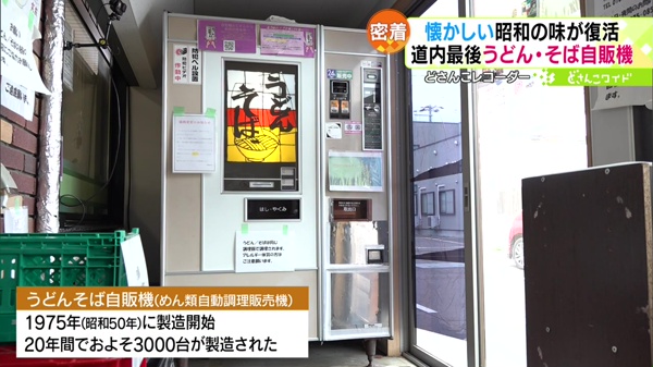 北海道のある場所を定点観察する企画「どさんこレコーダー」。今回は、北海道で最後の1台となった懐かしい「うどんとそばの自販機」に密着しました。