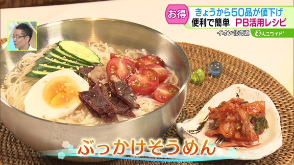 豪華に牛肉をトッピングした冷やし麺に、食感が楽しいもちもちのチヂミ。低価格なのに高品質なプライベートブランドの食品を活用した、食費を抑えるお得なレシピをご紹介しました。