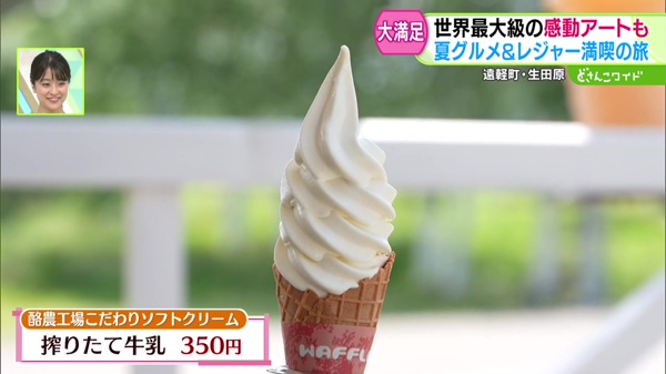 まずは絶品スイーツから。遠軽町産の新鮮な牛乳を使用した「ソフトクリーム」と「オリジナルジェラート」が人気のお店です。
