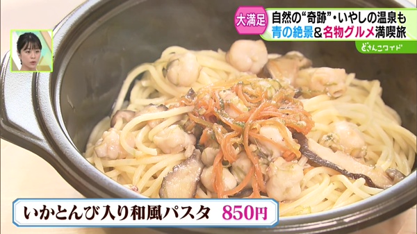 レストランでイカのくちばし部分“いかとんび”を使用した「和風パスタ」をいただきました。