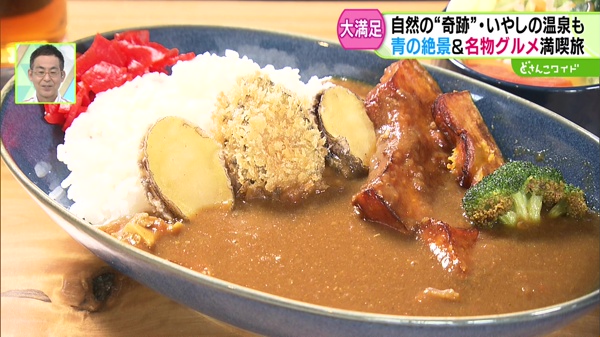 福島町はマグロやウニ、アワビも特産品。福島町の新名物「アワビカレー」をいただきました。それぞれの飲食店が元々提供していたカレーに、3つのアワビをトッピングした町内共通メニューです。