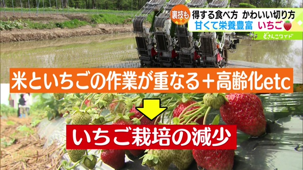 近年、高齢化が進む中、いちご農家は米を作っている方も多く、時期が重なって大変なこともあり、いちごをやめる農家が増えてきました。そこで4年前から比布町の若き生産者たちに、冬いちごの栽培が託されました。