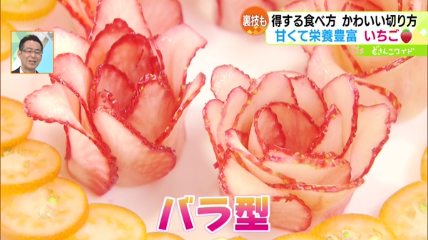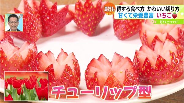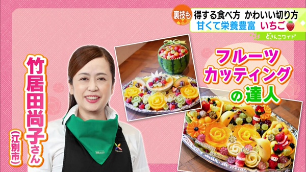 いちごの楽しい切り方を達人に教えていただきました。北海道でただ一人、日本野菜ソムリエ協会認定・ベジフルカッティングプロフェッショナルの資格を持つ竹居田尚子さんです。