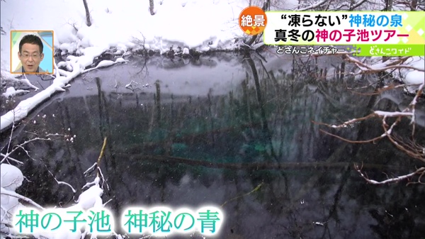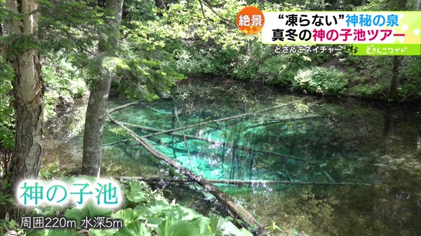 摩周湖からほど近い場所に「神の子池」という神秘的な泉があります。夏の人気観光地として知られていますが、冬はどんな姿になっているのか。こちらも“冬限定のツアー”を利用して確かめに行きました。