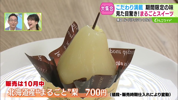 余市町産の洋梨をまるごと1個そのまま使った贅沢なスイーツです。※販売は10月中、値段・販売時期は仕入れにより変動