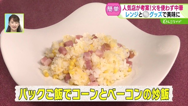 パックご飯でコーンとベーコンの炒飯
