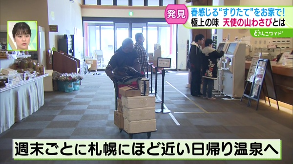 「天使の山わさび」は明後日4/27(土)からの3連休、“石狩天然温泉 番屋の湯”で販売するそうです。