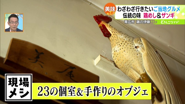 帯広で50年以上続く鶏料理のお店です。店内のあちこちに手作りの鶏のオブジェなどが隠されています。