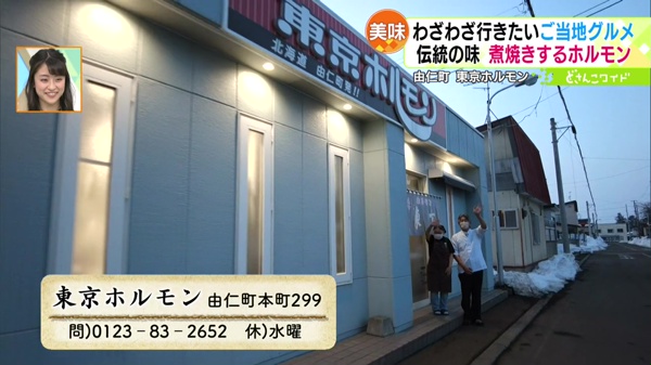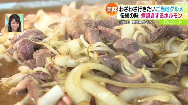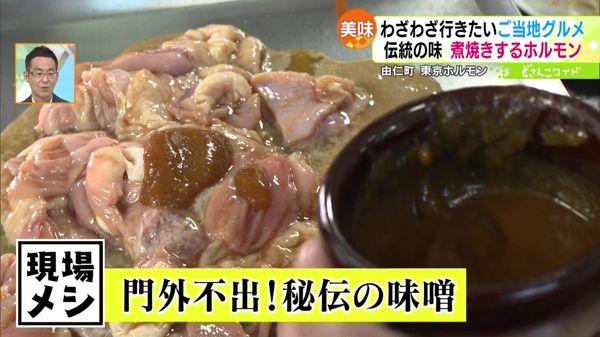 由仁町のソウルフードと言われている「東京ホルモン」を食べられます。網ではなく鉄板で焼く“ホルモン焼き”。その日仕入れた新鮮なホルモンのみを使用しているので、臭みが全くありません。門外不出の秘伝の味噌を絡めて焼いていきます。