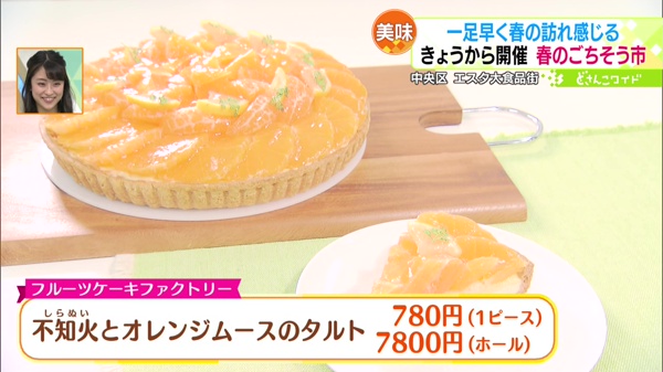 ●フルーツケーキファクトリー「不知火とオレンジムースのタルト」780円(1ピース)・7800円(ホール)爽やかなオレンジムースの上にみずみずしい不知火をのせた春限定のタルトです。