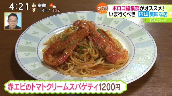 ●赤エビのトマトクリームスパゲティ 1200円統括編集長・福崎さんおすすめの一品。濃厚なエビの旨味と香りが口いっぱいに広がります。
