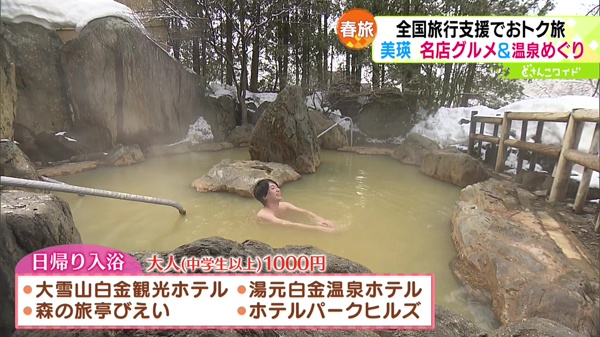 全国旅行支援が延長になりました。オフシーズンということもあり、この春はさらにお得になっています。宿泊料は、各ホテルにお問い合わせください。